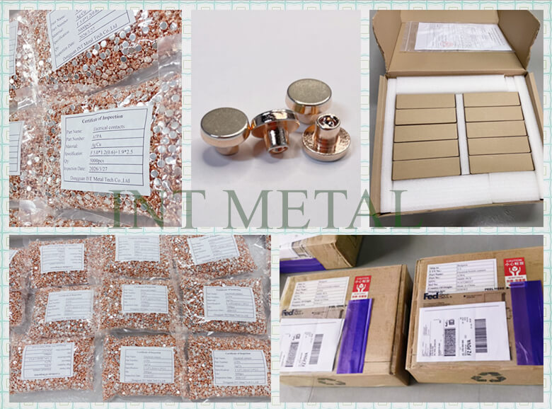 ڈونگ گوان انٹ میٹل ٹیک کمپنی لمیٹڈکولڈ پریسنگ کمپوزٹ (کولڈ ہیڈنگ) کے عمل کو اپناتا ہے، جو زبردست دباؤ کے ذریعے ٹھوس حالت میں چاندی یا چاندی کے مرکب کو تانبے کے ساتھ جوڑتا ہے۔ یہ عمل چاندی کی تہہ کی یکساں موٹائی اور انتہائی اعلی بانڈنگ طاقت کو یقینی بناتا ہے۔ چاندی کے رابطےکی طرف سے تیارآئی این ٹی میٹلگاہک کی مصنوعات کی زندگی بھر کی وشوسنییتا کی ضمانت دے سکتا ہے۔